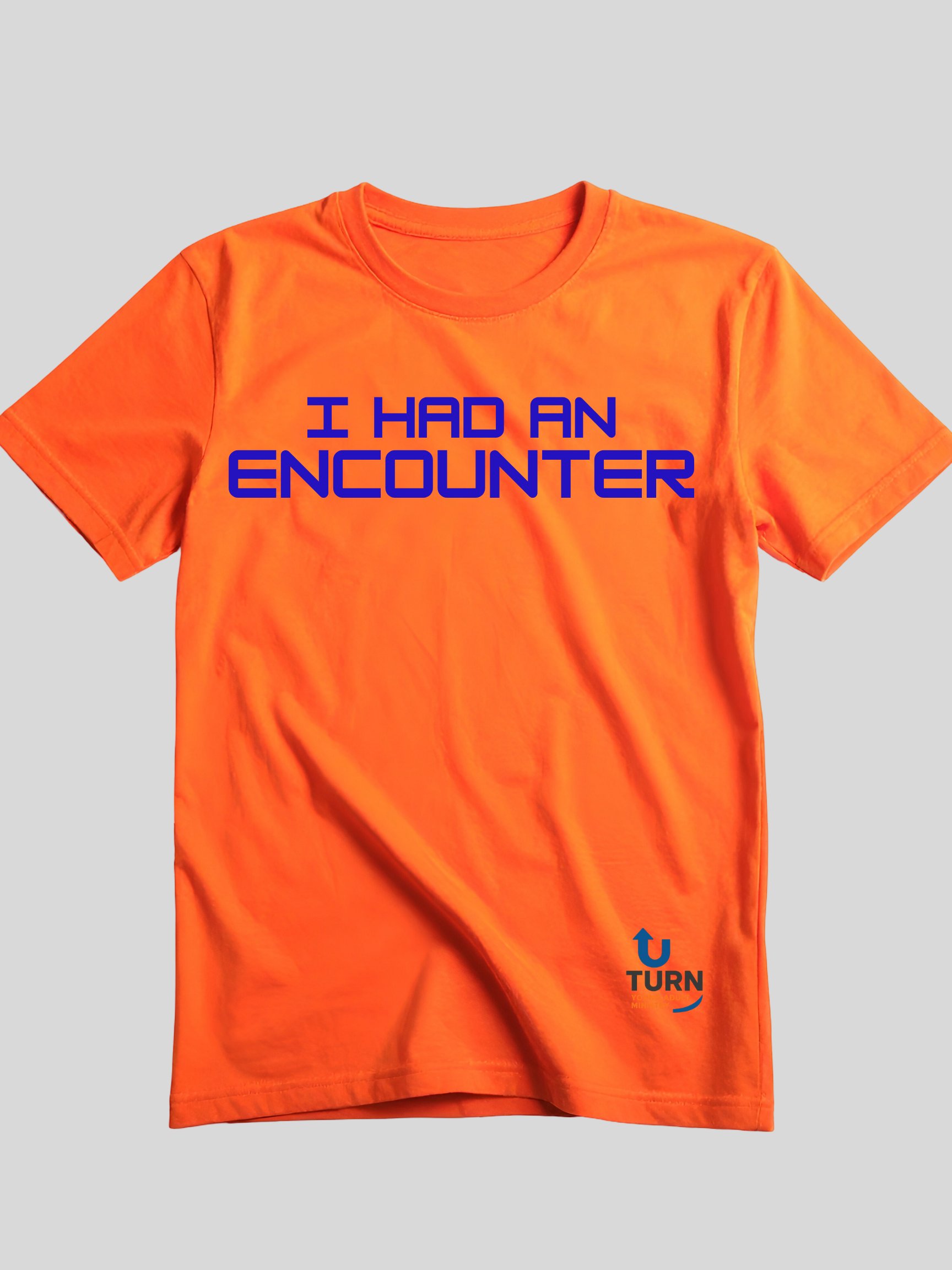 Official T-shirt for The Encounter Shirt Color: Orange Shirt Text Color: Navy Unisex Gildan
